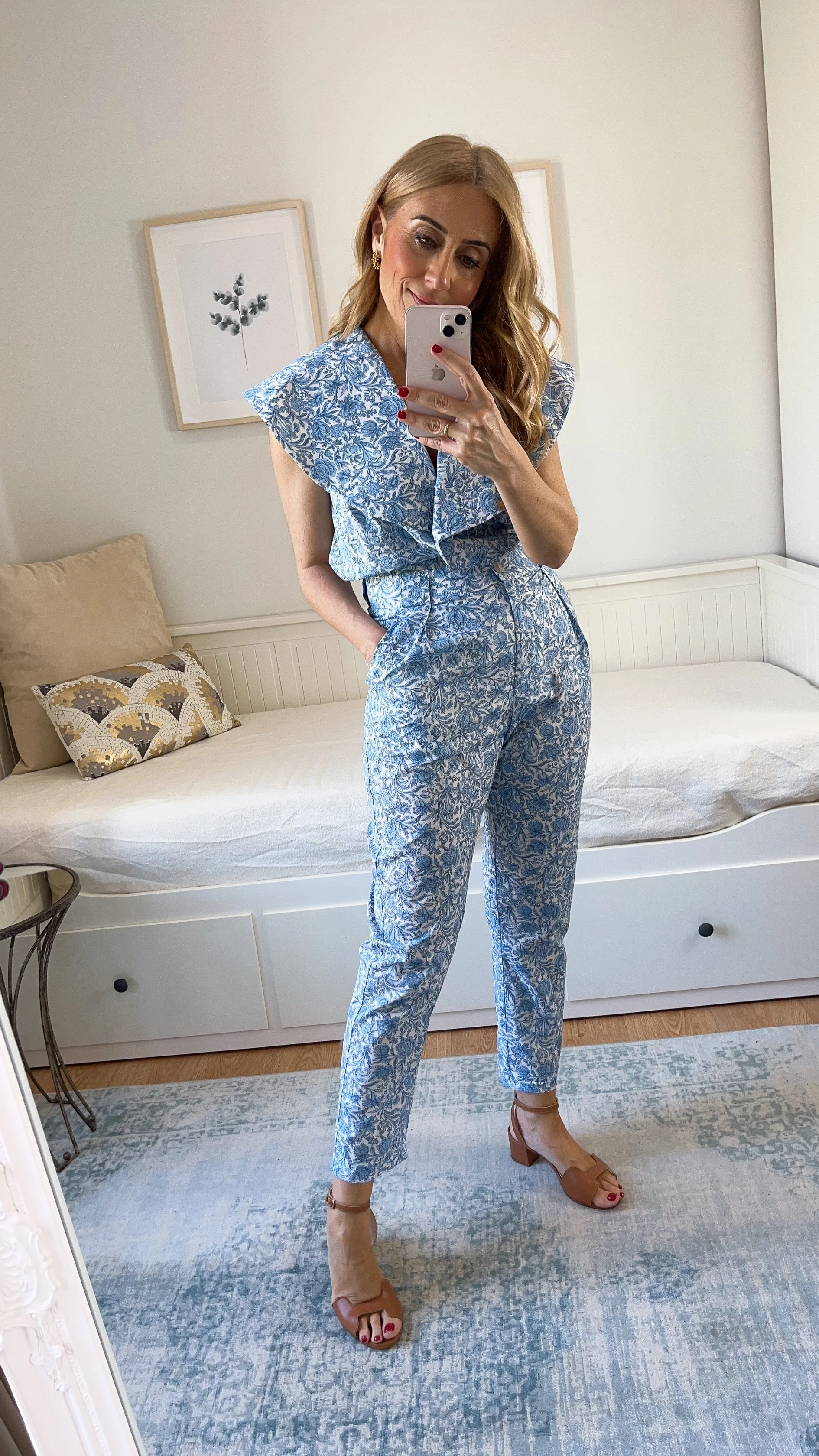Confeccionado en tejido de Liberty inspirado en los jardines ingleses, donde las flores se mecen con la brisa y las sombras de los árboles bailan con la luz del sol.